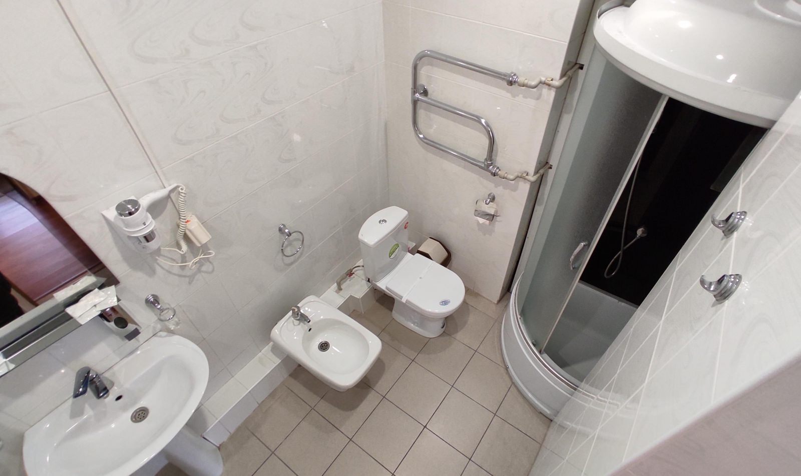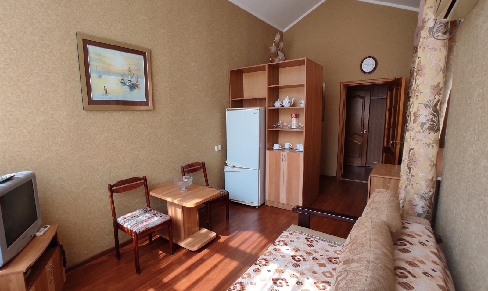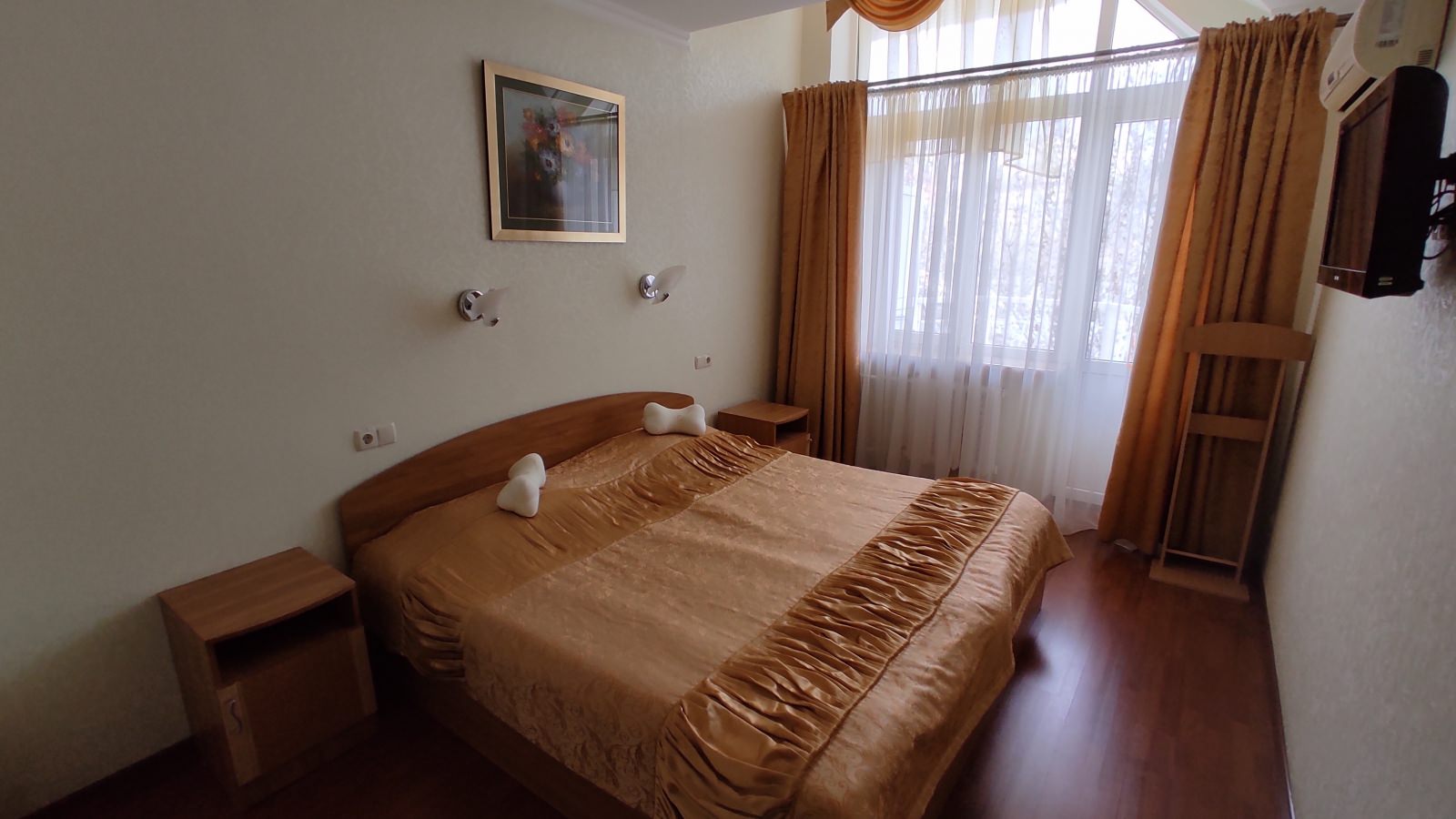 Его площадь составляет 29 кв.м. В наличии: телевизор, холодильник, фен, чайник, набор посуды, халат, тапочки, средства личной гигиены.