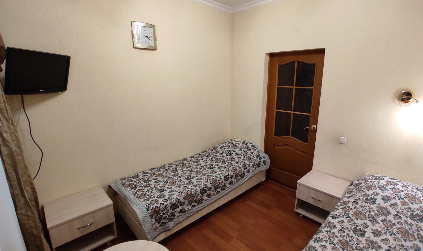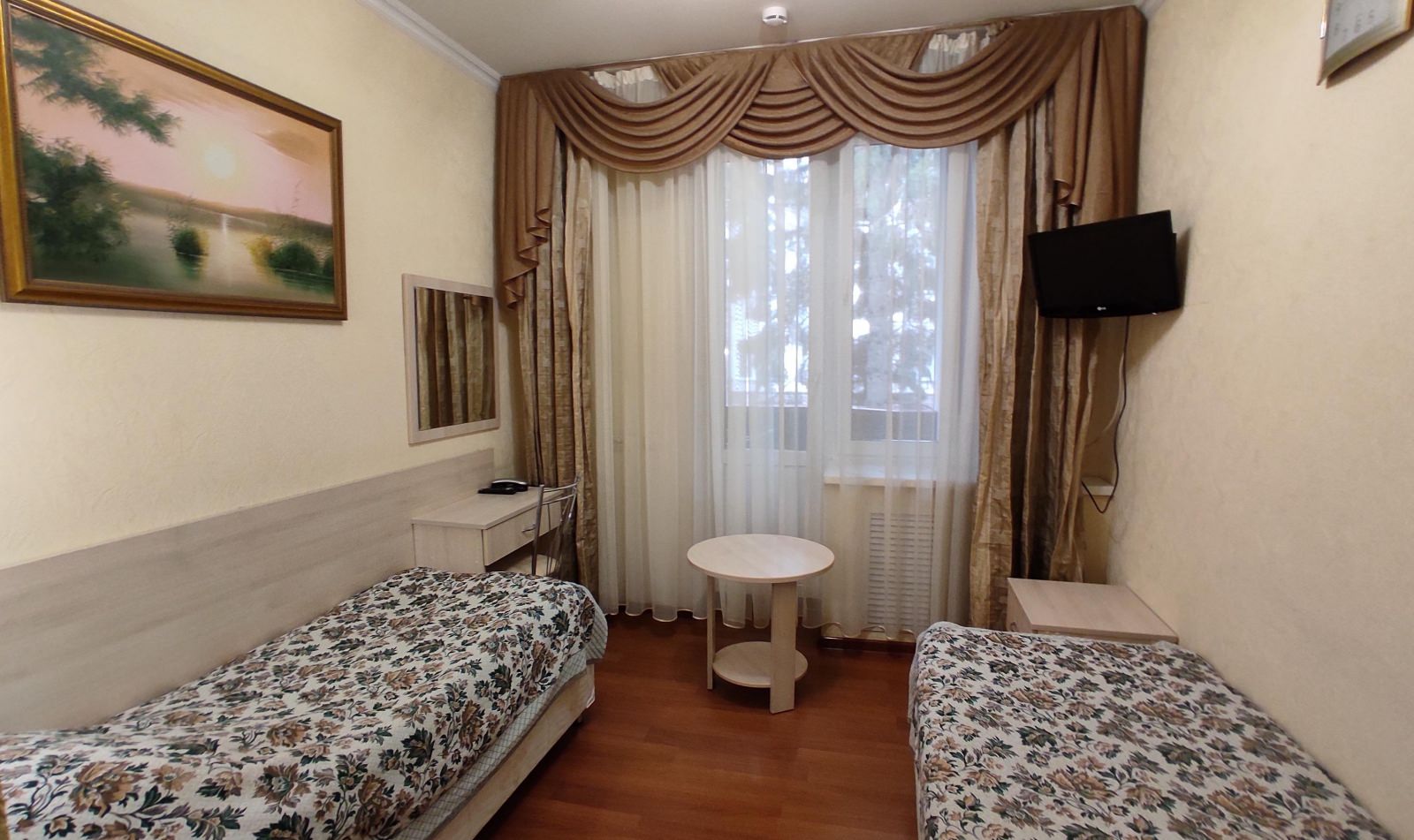 Номер площадью 14 кв.м оборудован 2 односпальными кроватями.